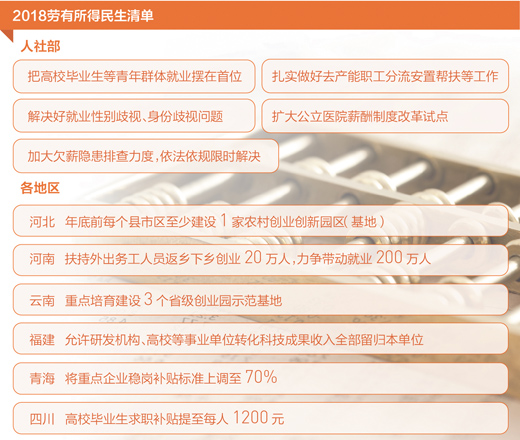 在全国层面,记者从人社部获悉:2018年促进“劳有所得”主要有以下重点——